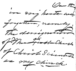 again testifies that Mrs. Eddy did not intend for the material organization to